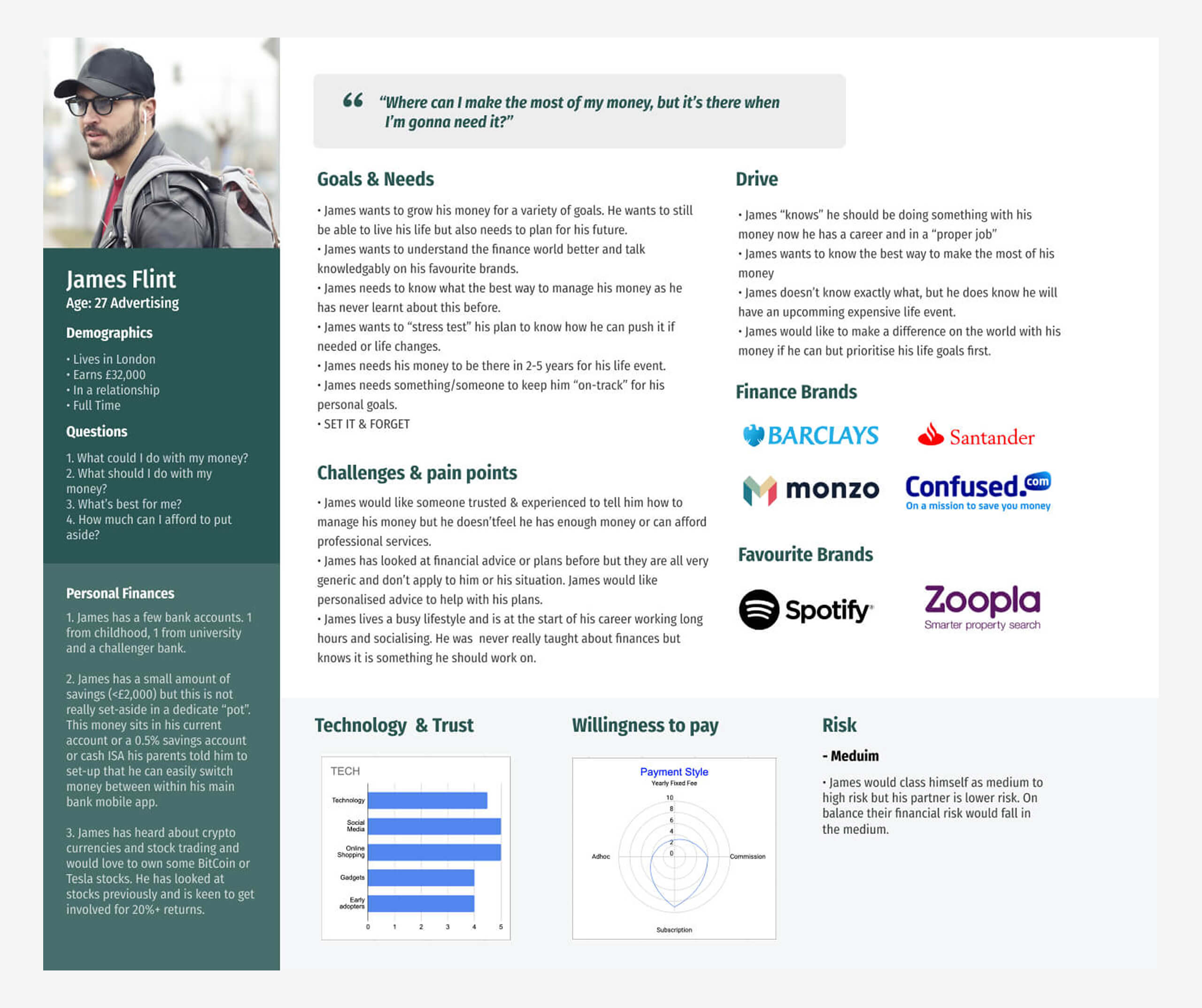 I conducted interviews and surveys to gather insights on user expectations, interest in financial coaching, and target audiences. This data-driven approach gave us clear direction on who we were designing for.