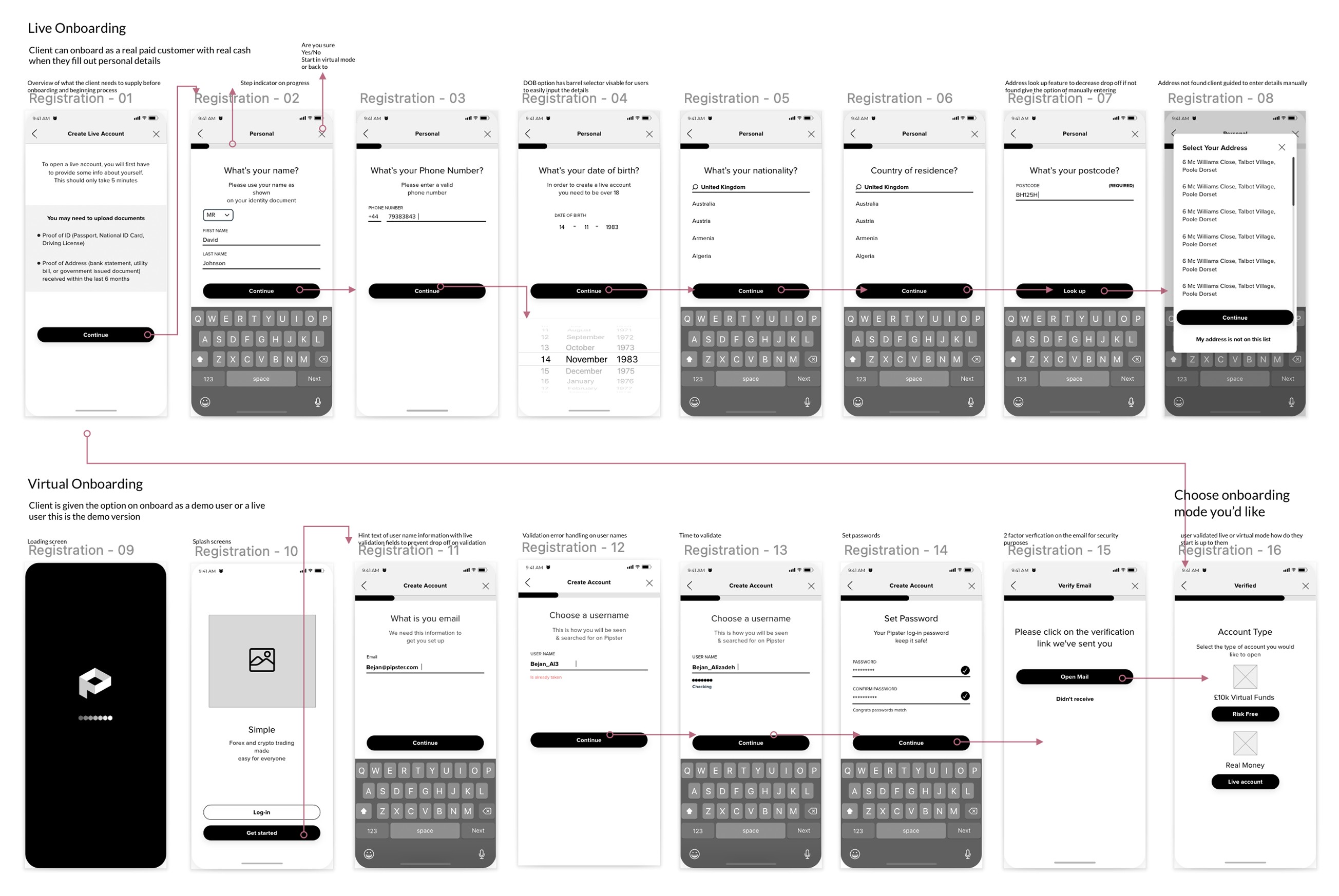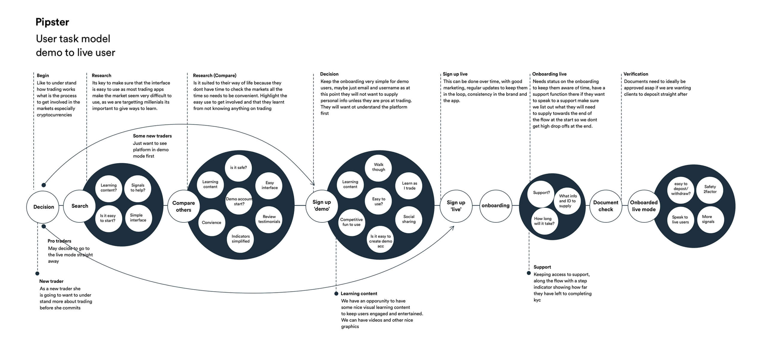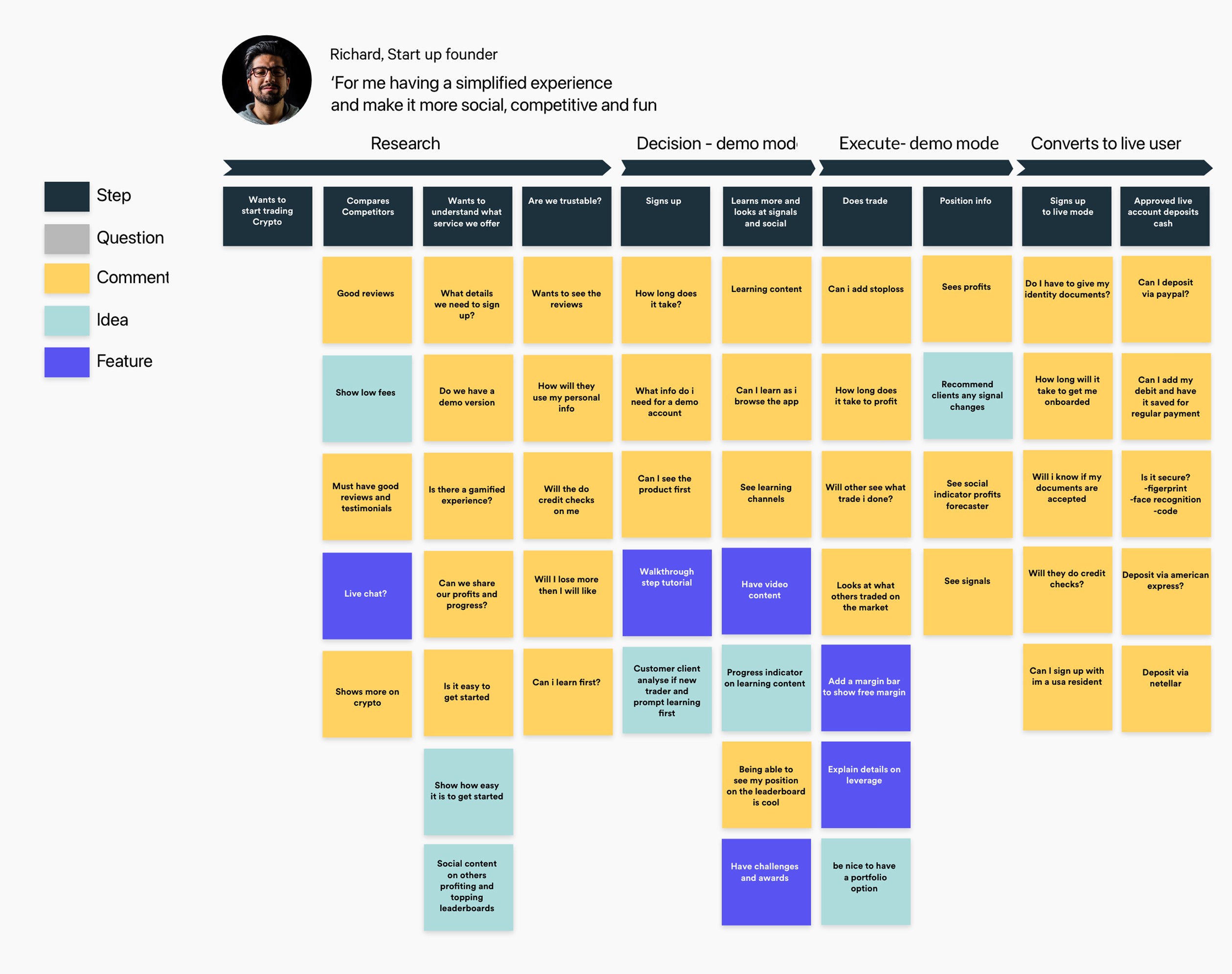 User journeys, KYC, user research, workshops, payment system